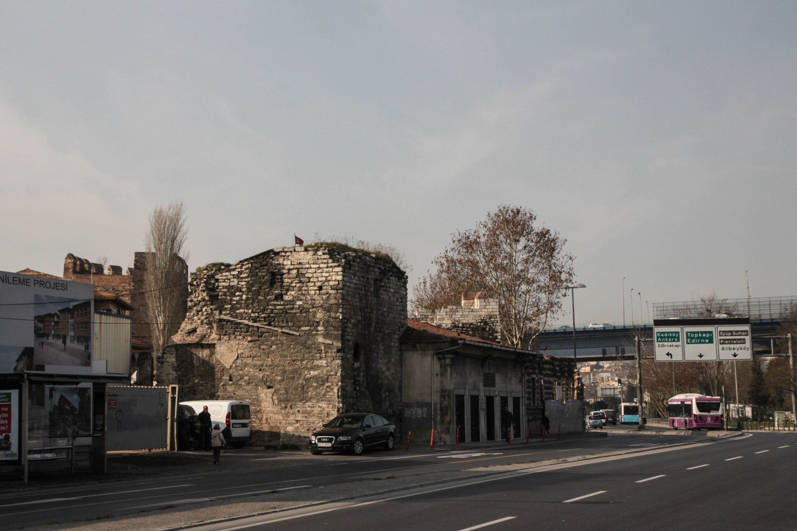 Название происходит от того, что до возведения Феодосием II нынешних городских стен церковь стояла вне стен императорской столицы, к югу от Золотого Рога. Сохранившееся здание построено тщанием Марии Дука, тёщи императора Алексея Комнина, в 1077-81 гг. Уже через полвека часть сводов обрушилась, вероятно, из-за землетрясения, и младший сын Алексея профинансировал восстановительные работы.