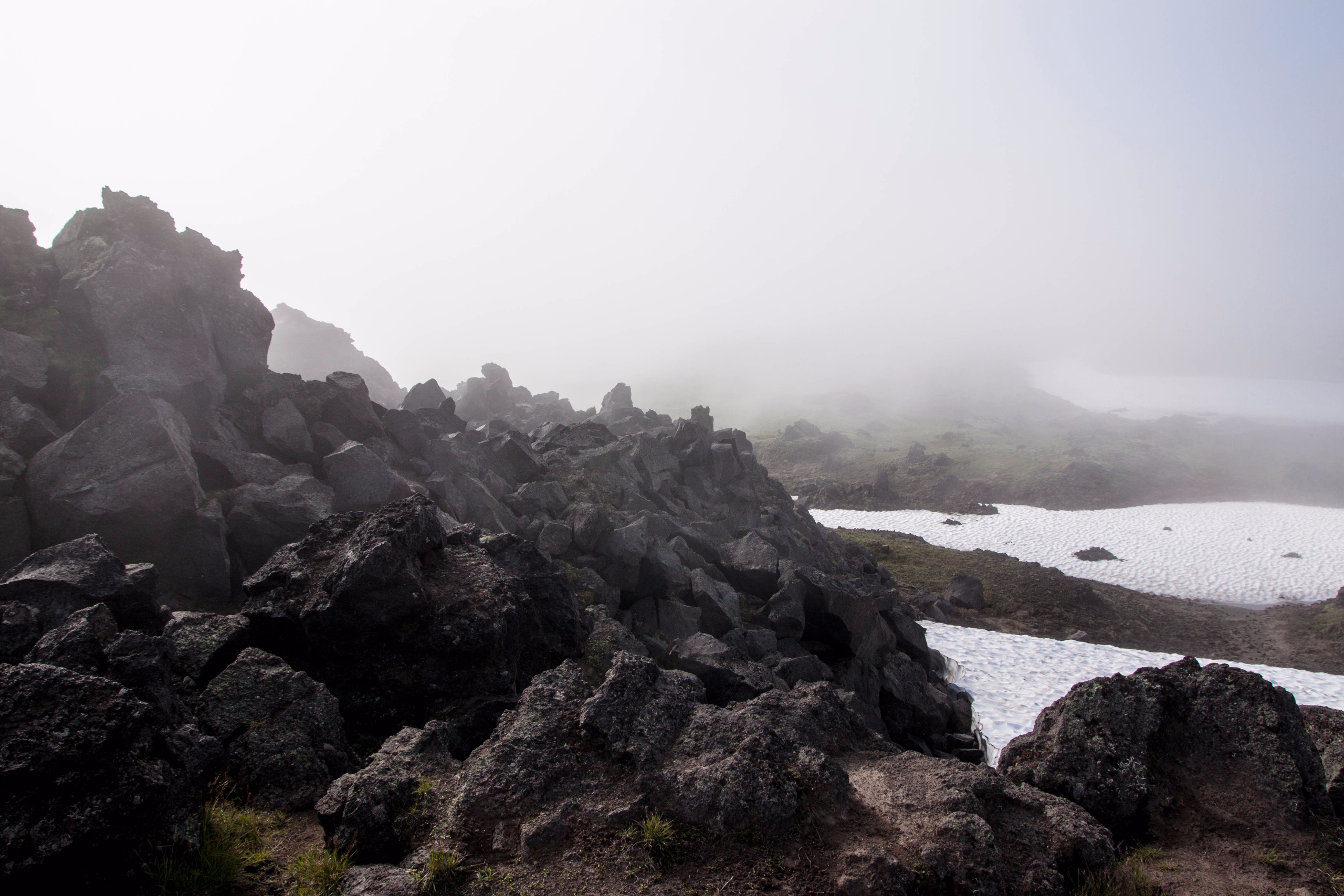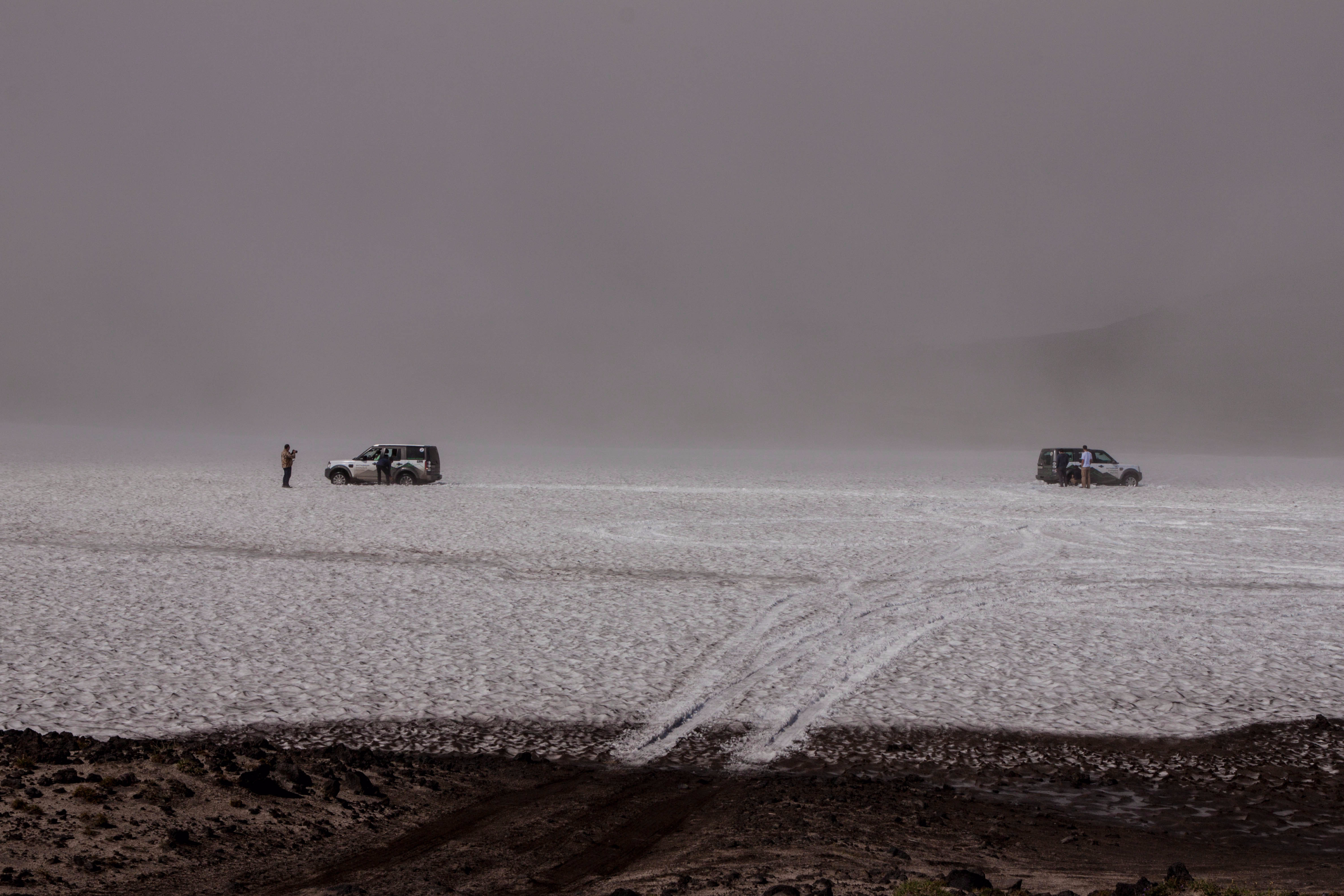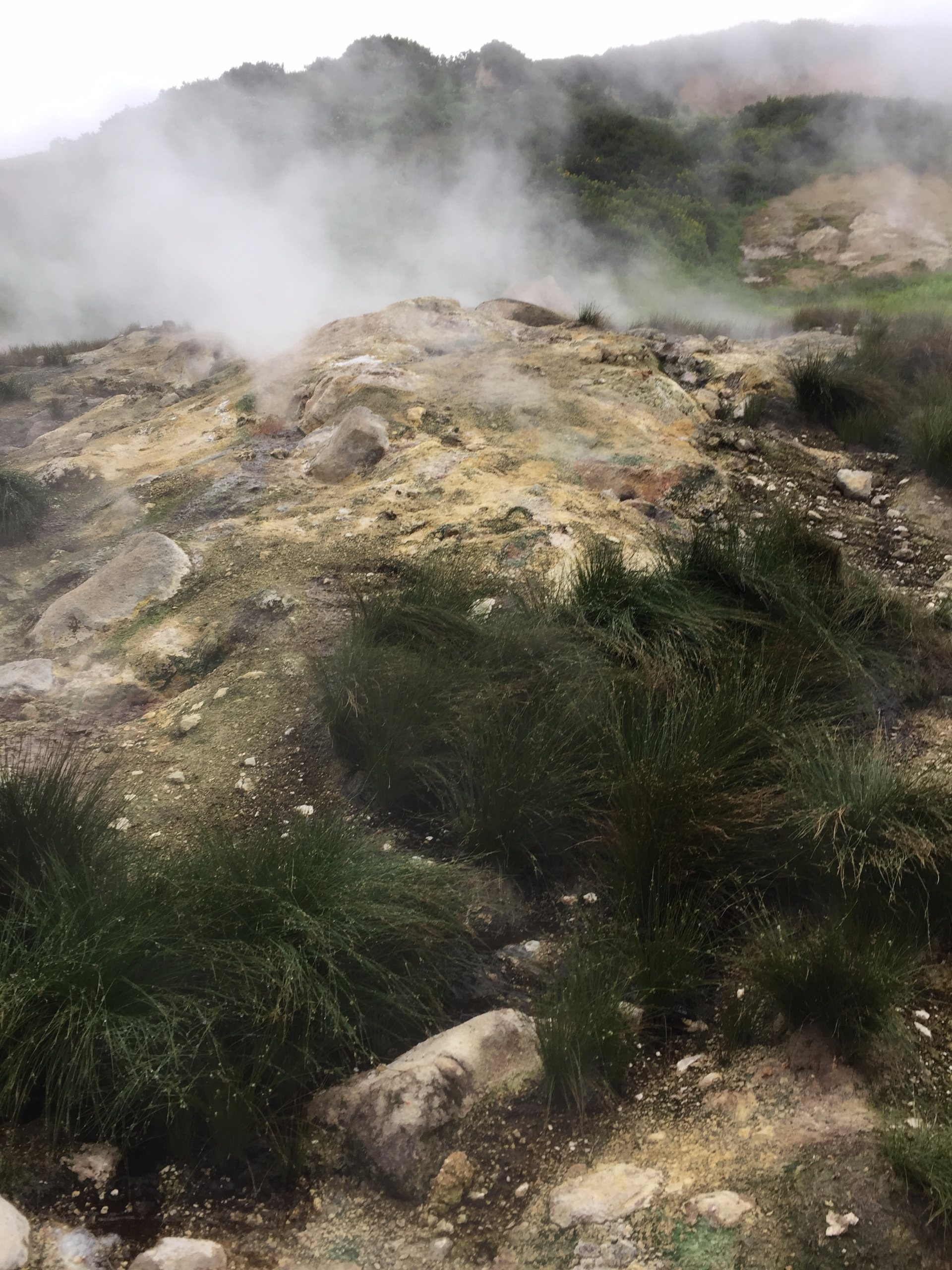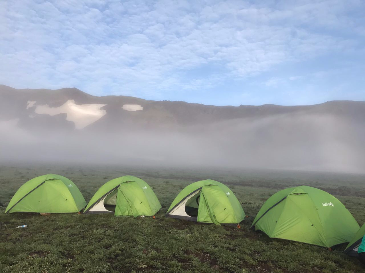 Ночевали в палаточном лагере в кальдере вулкана. Утром это выглядело так. Причем вначале все было затянуто довольно сильным туманом.