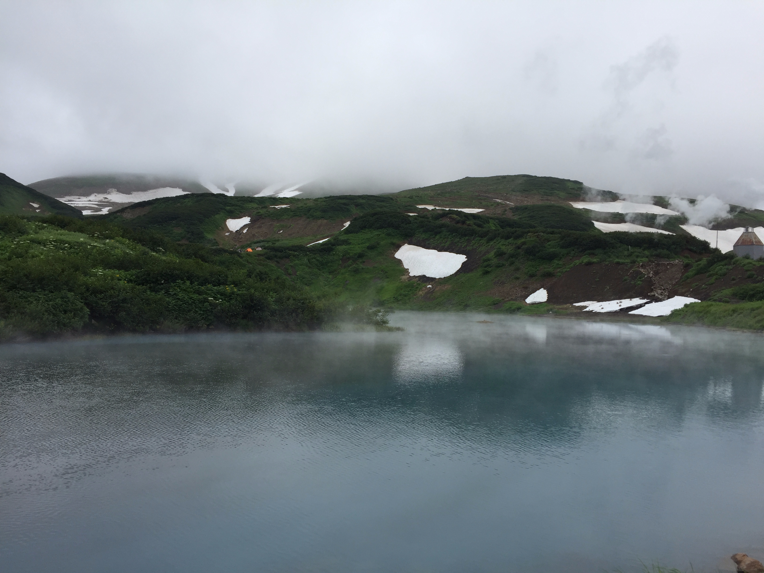Купание в горячем источнике. Тут вода градусов 50! Выдерживаешь максимум минут 15! Потом красный как рак выходишь!