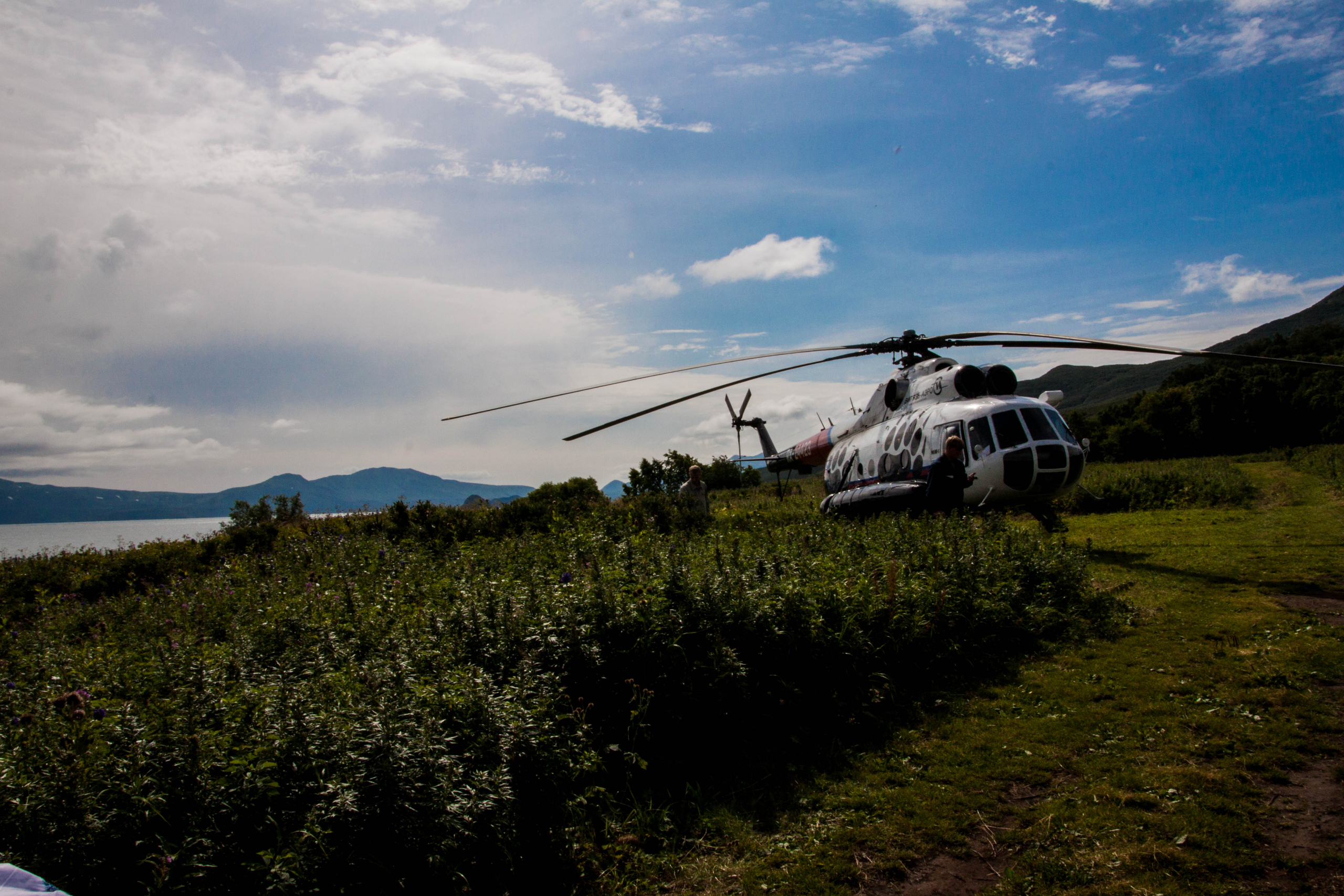 На следующий день (третий) нас ждала вертолетная экскурсия на Курильское озеро. Там заповедник, лаборатория экологов. В общем, все серьезно. И очень много мишек, к которым, в сопровождении рейнджера с ружьем, можно подходить относительно близко.